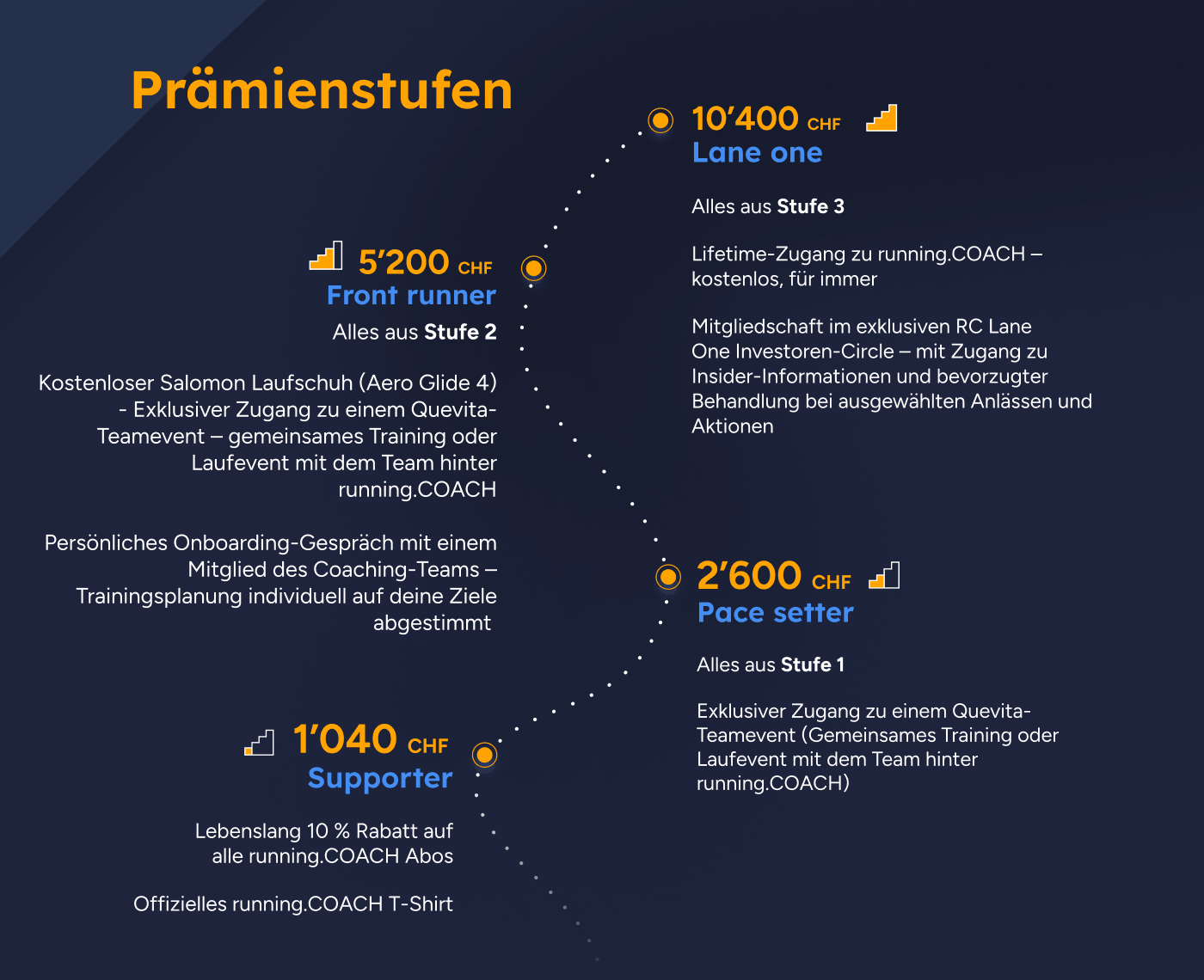 Invest in running.COACH and benefit from exclusive advantages – depending on the investment level, special added values await you. Choose your entry point and become part of our success story.